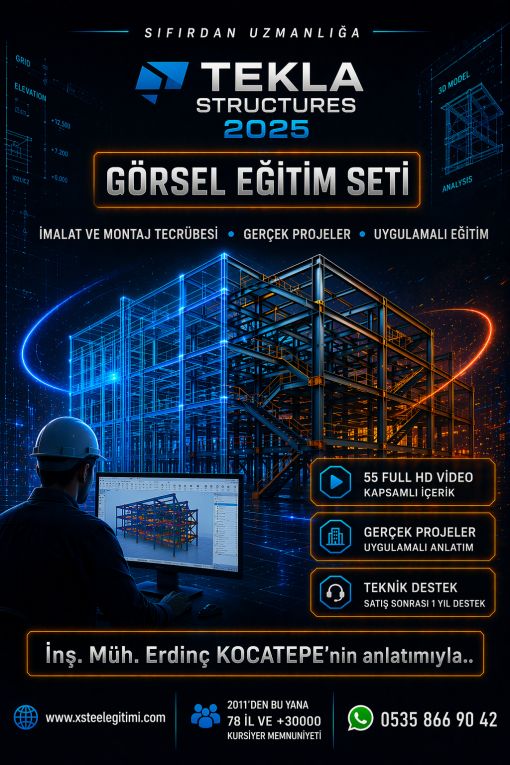 1) Tekla 2025 İnteraktif eğitim seti (Türkçe görsel videolu anlatım)
